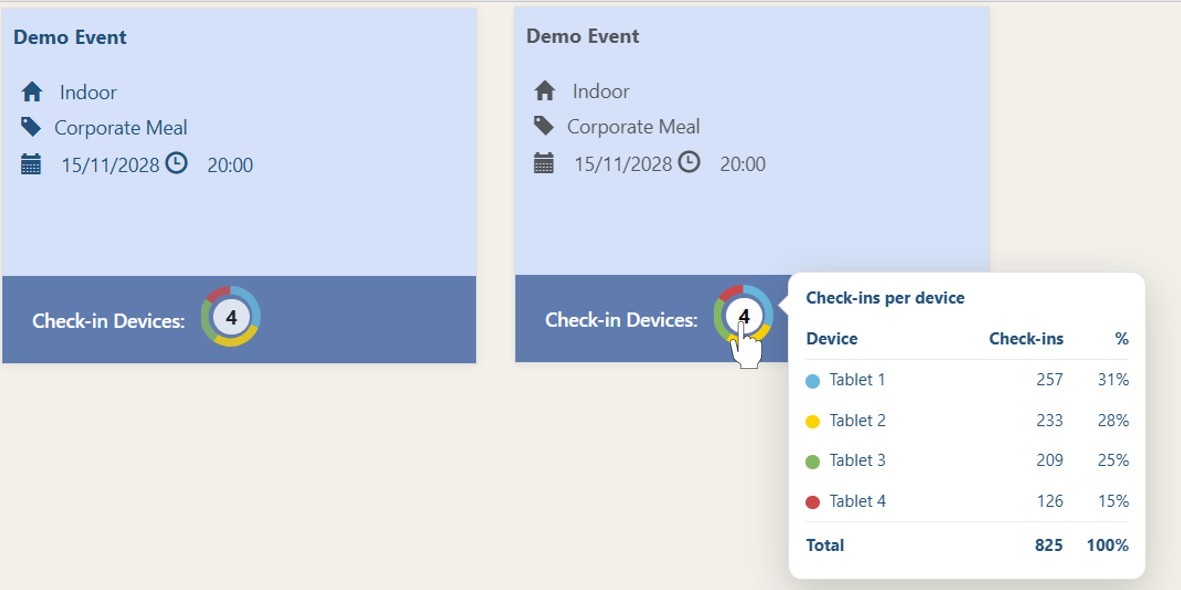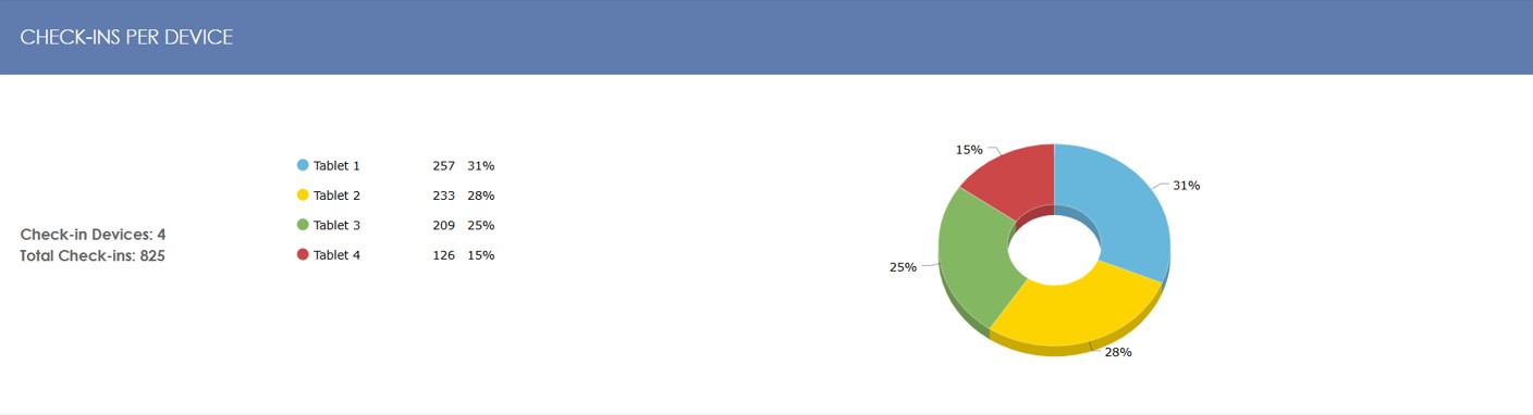 The colored ring shows check-ins by device, so you can instantly see which devices handled most of the check-ins.