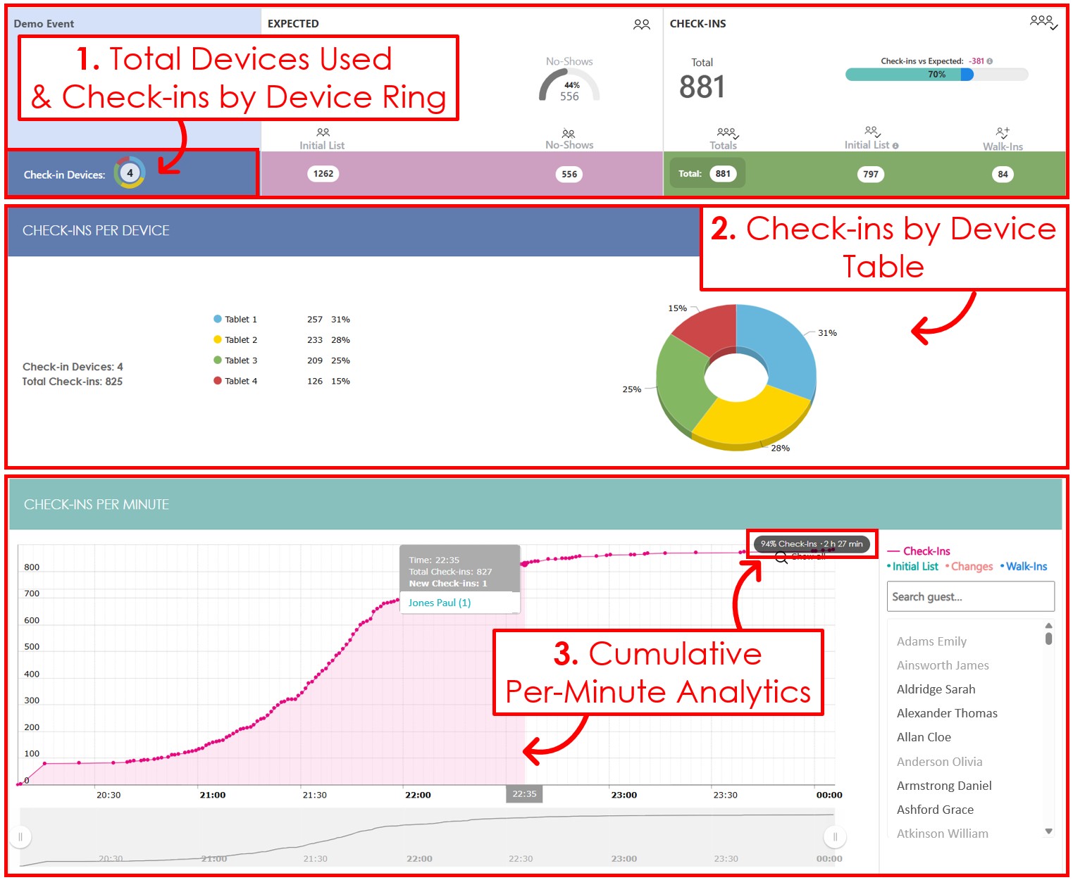 This makes it easier to measure check-in speed and pacing, and it can reveal late-arrival patterns that help you optimize reception staffing for similar future events.